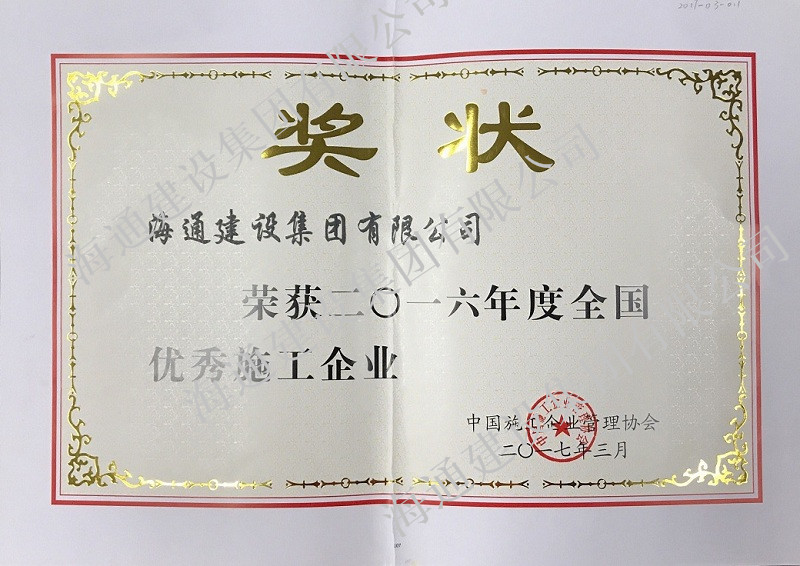 全國(guó)優(yōu)秀施工企業(yè)2016