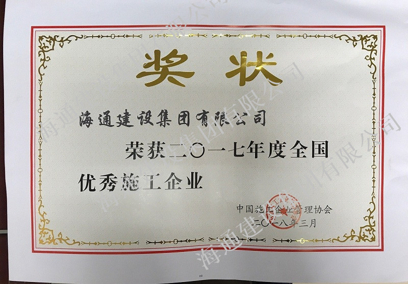 全國(guó)優(yōu)秀施工企業(yè)2018