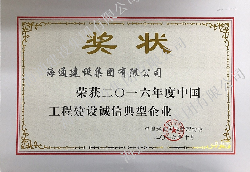 中國(guó)工程建設(shè)誠(chéng)信典型企業(yè)2016